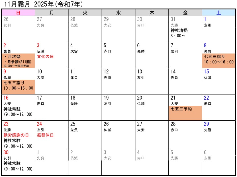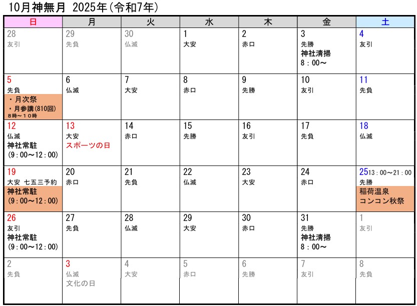 令和7年神無月、月次祭・月参講準備10/3(金)に奉仕。