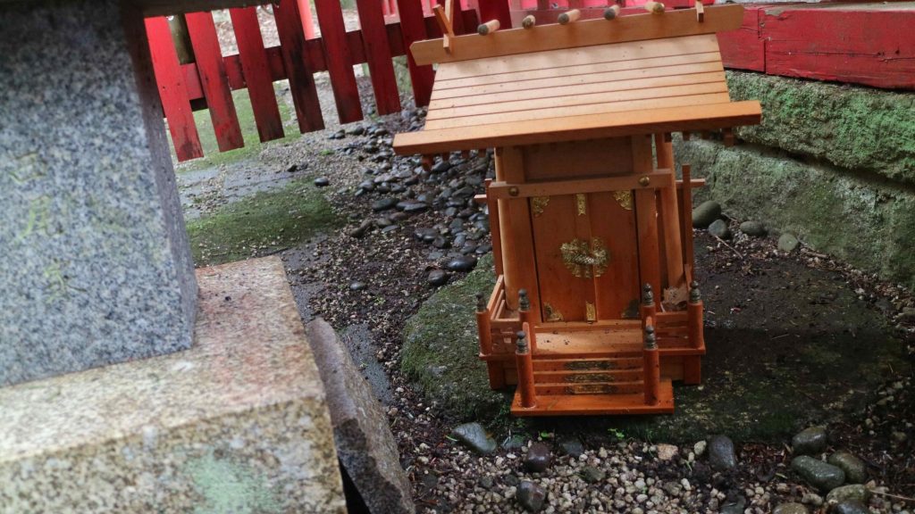 荷機稲荷神社境内神殿裏に、神社へのお問い合わせなく「稲荷大明神石碑」・「神棚」が放置されていました。