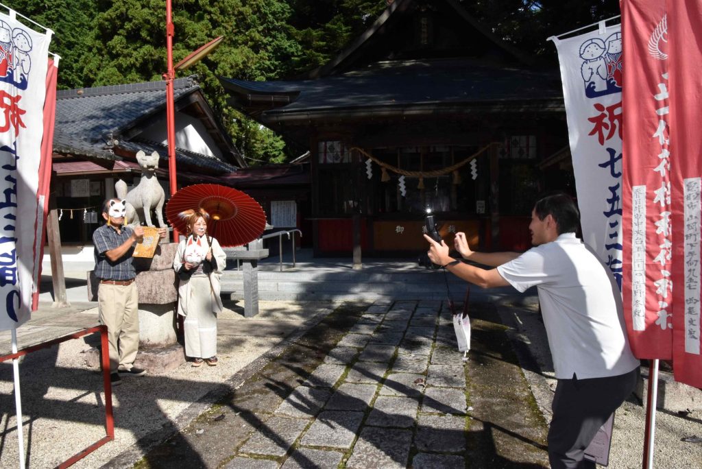 仮装盆踊りキツネの姿など、仮装して参加しましょう。