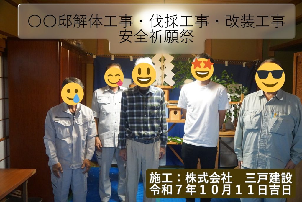 ●10/11 ○○邸リホーム・庭木伐採・一部家屋解体安全祈願祭 施工:三戸建設